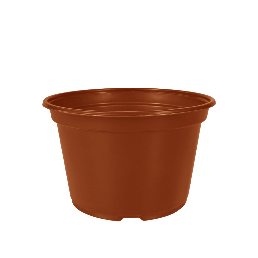 Our Round Mum Pots are an ideal solution for these hardy fall plants. A dark interior helps shield delicate plant roots from light, while a footed bottom provides optimal drainage. A smooth interior finish also allows plants to release easily. Standard colors include black and terra cotta. Offset printing is available for customers looking to brand their containers.